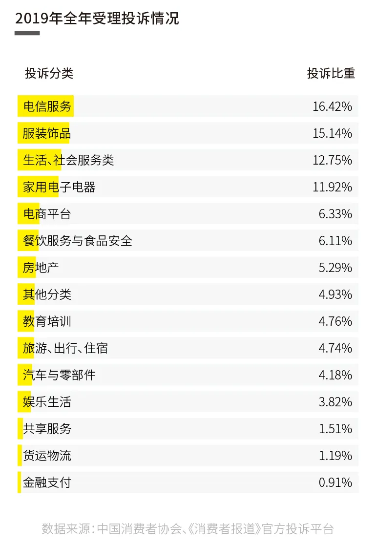 2019-2020投诉大数据:大众、小米、三大运营商投诉居前