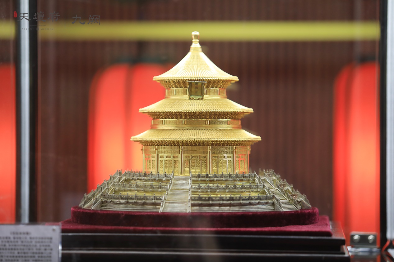 更加令人惊叹的是采用花丝镶嵌、錾刻等工艺的“天坛祈年殿”,作品再现了祈年殿富丽堂皇的面貌,寓意与天同福,福寿安康。该作品获得“工美杯”中国传统工艺作品大赛银奖。