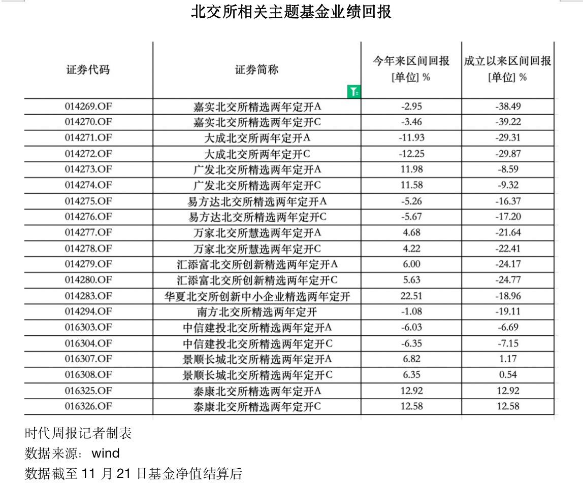截至11月21日收盘净值,已有超过半数北交所主题基金年内业绩回正。