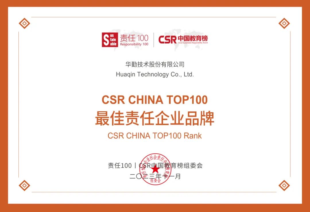 11月,华勤技术股份有限公司荣获2023年第七届“责任100 | CSR中国教育榜”——最佳责任企业品牌