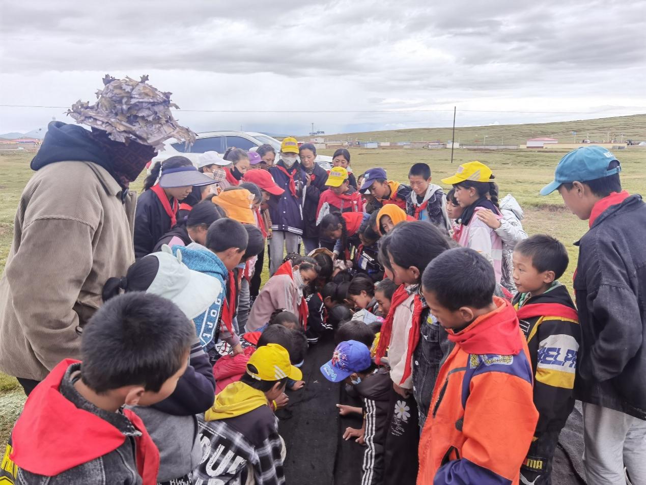 在学校开展游牧文化乡土教育,带领孩子们体验牦牛绳和黑牦牛帐篷的编织技术等传统技艺