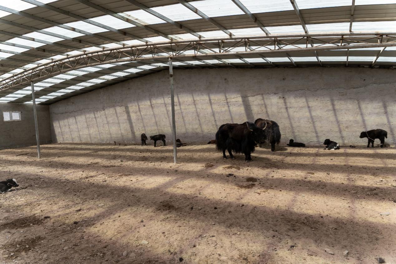 青藏高原的曲麻莱县叶格乡莱阳村,十一月的寒意逐渐加深,隔三岔五的降雪纷纷扬扬地覆盖着广袤的草场。正在牲畜暖棚忙碌的藏族阿姐们不时发出开心的笑声。牦牛已早早被赶上山觅食,今年初生的小牛们留在暖棚里相互嬉戏,宽敞的空间让它们可以自由地奔跑和玩耍,无拘无束地享受着幸福的时刻。对于世世代代生活在高原草场上的牧民,牦牛既是主要食物来源,也是重要的经济支柱。在这里,牦牛通常要饲养五年才能出栏,每一头牦牛都需要牧民持续多年的照料。合作社的集体牲畜暖棚给大家带来了显而易见的好处,它不仅为牛羊,特别是其中体质差一些的牛羊提供了寒冬里温暖舒适的居住环境,还大大降低了初生牲畜在严寒天气中的死亡率。这种改善对于牧民们来说意义重大,因为牛羊是他们生活的重要组成部分,对他们的生计和收入至关重要。