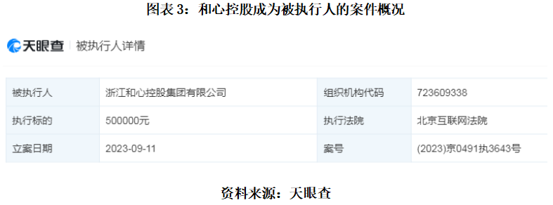 需注意的是,作为该行的第二大法人股东,和心控股已于今年9月首次成为被执行人,执行标的金额为50万元,案号为(2023)京0491执3643号。