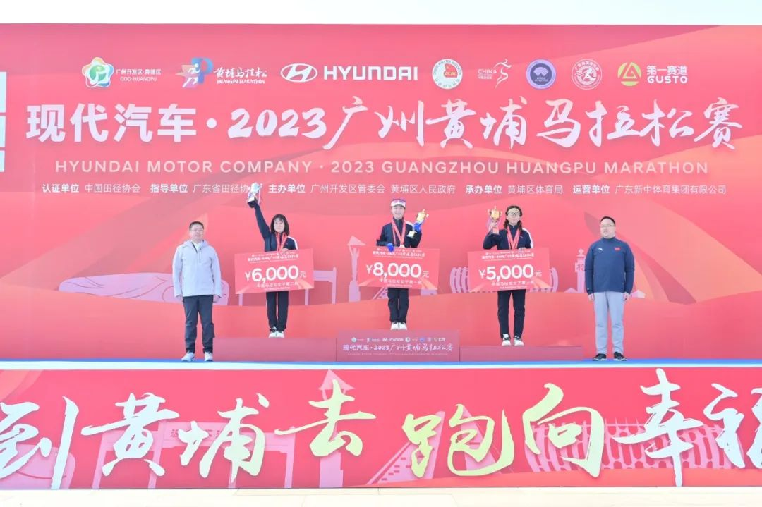 广发证券党委副书记、监事长周锡太和黄埔区副区长何宇鸿为女子半程马拉松颁奖