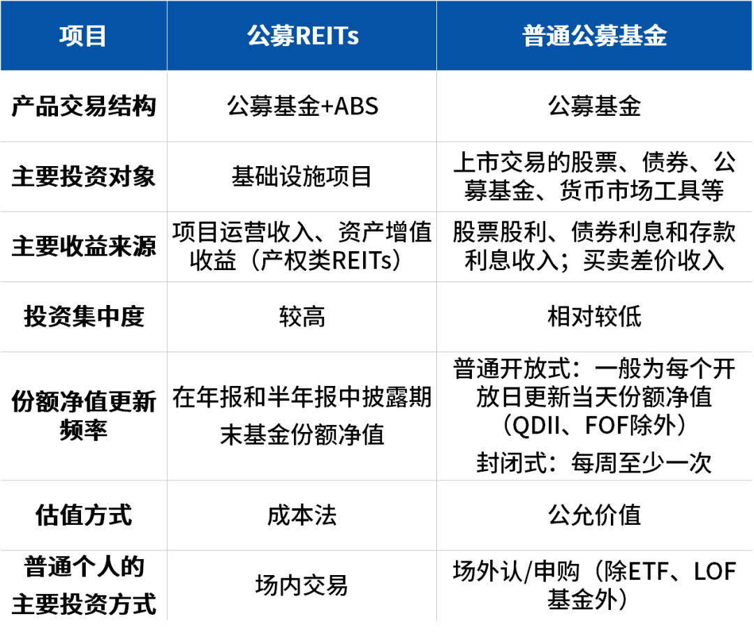 最后,我们用表格简要总结下公募REITs和普通公募基金的区别: