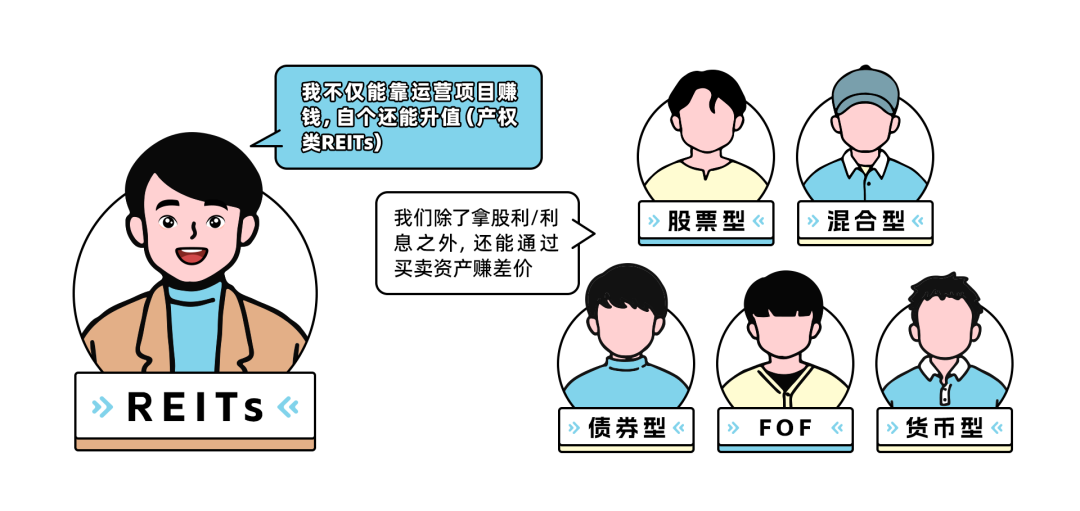 不同的投资对象,意味着公募REITs和普通公募基金的主要收益来源是不一样的。一般而言,公募基金的收益来源除了股票股利、债券利息和存款利息收入之外,还有通过买卖股票、债券等资产获得的差价收入。
