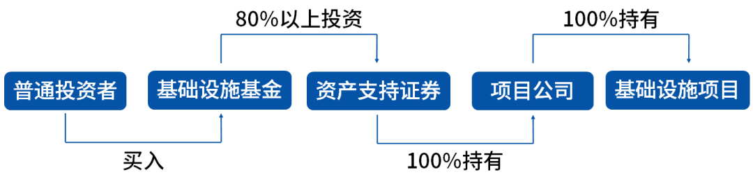 公募REITs是将80%以上的基金资产通过基础设施资产支持证券(简称“基础设施ABS”),投向基础设施领域,包括基础设施项目的所有权或者经营权,剩下的小部分基金资产应当拿来投资利率债、AAA级信用债或货币市场工具。
