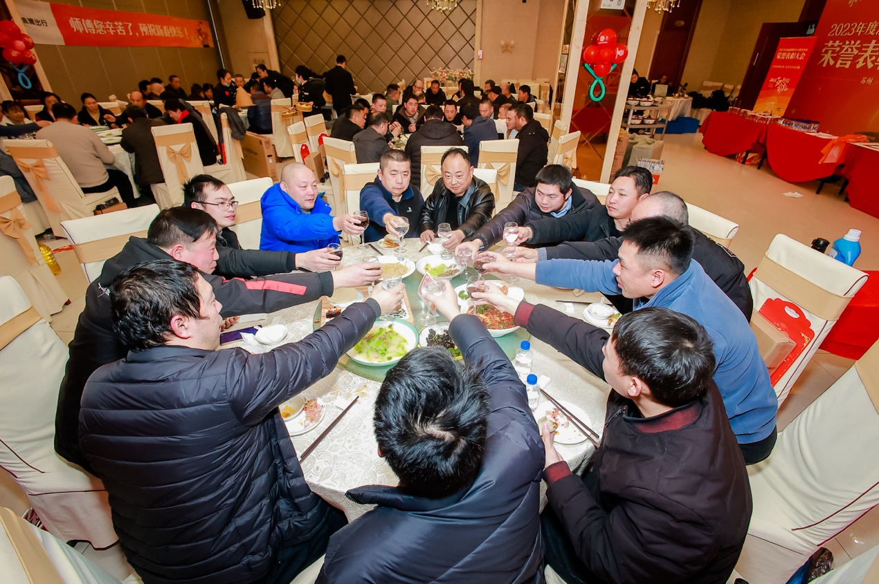 图为:苏州滴滴司机家宴现场师傅们举杯庆祝