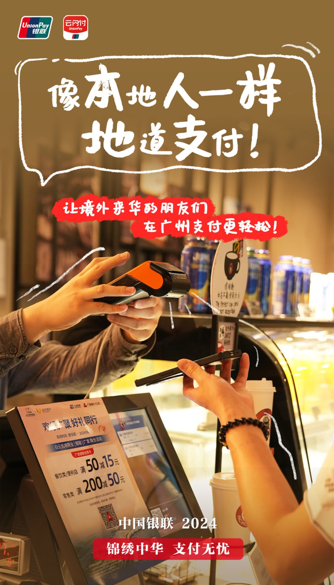 看,这些新变化让境外来的朋友们在广州的生活、旅游等变得更加轻松,我们期待更多的外籍朋友能够选择广州作为他们的目的地,银联也将为其提供更加优质、高效、便捷的支付服务,让更多人外籍朋友有更好的消费体验。