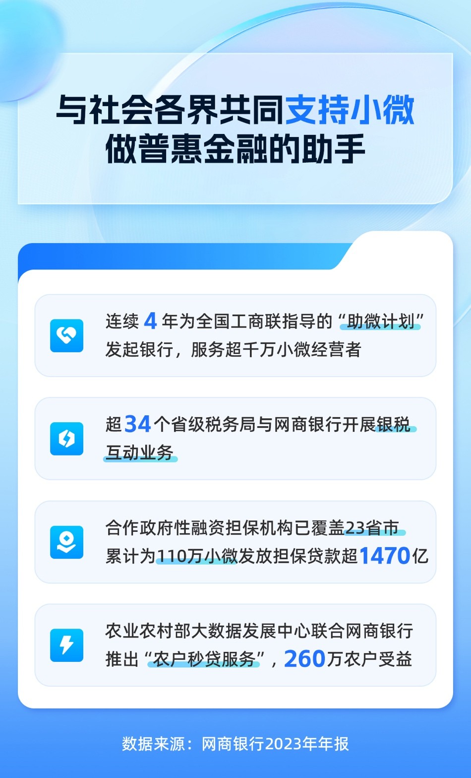 网商银行2023年年报:连续4年和全国工商联发起助微计划,服务小微超5300万