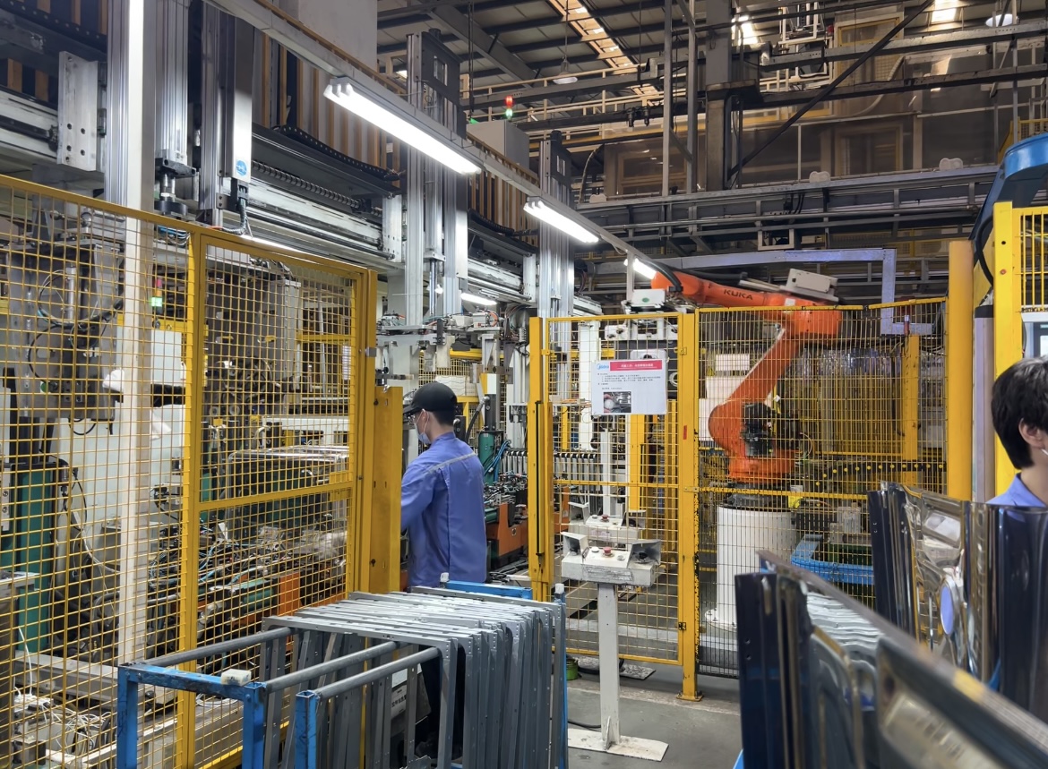 除此之外,在美的厨热洗碗机工厂,可以看到,在面积达2.4万平方米的总装车间内,自动化设备的数量要远超工人数量。