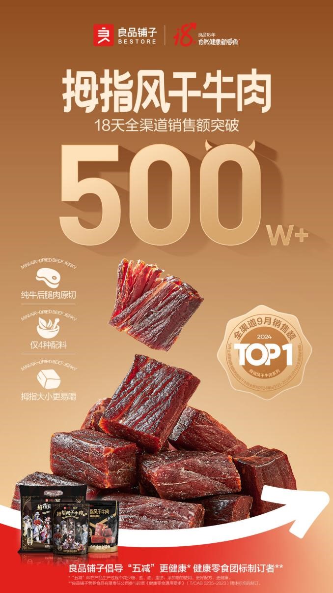 18天500万!良品铺子拇指风干牛肉领跑市场