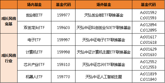 表:部分成长风格指数基金产品