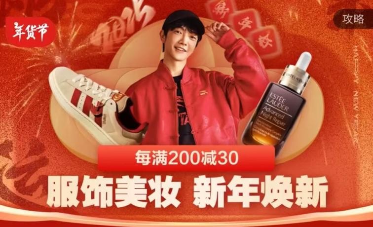 1月6日晚8点京东服饰美妆年货大放价 跨店每满200减30