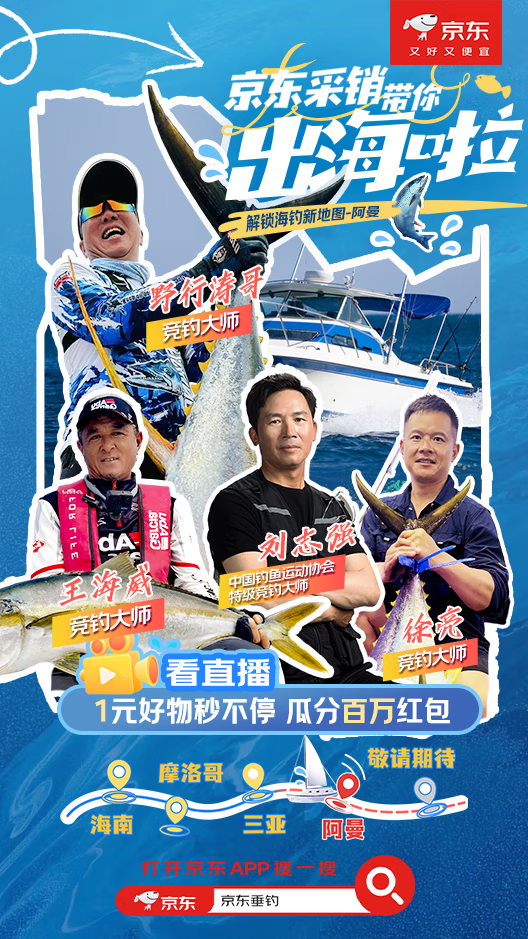 京东采销又要带你出海啦!4月22日起,京东采销将携手野行涛哥、王海威、刘志强、徐亮四位海钓大神,前往中东阿曼哈斯克、塞拉莱等地开启第四次海钓之旅。此次他们将开启为期10天的超长海钓直播,还将挑战钓起200斤黄鳍金枪鱼。4月22日至5月1日每天12点起,大家来京东 APP 搜索“海钓直播”进入京东垂钓直播间,围观搏鱼的同时还能选购专业装备,享受爆款直降20%、新品9折、1元秒杀等惊喜福利,更能瓜分直播间百万红包雨。