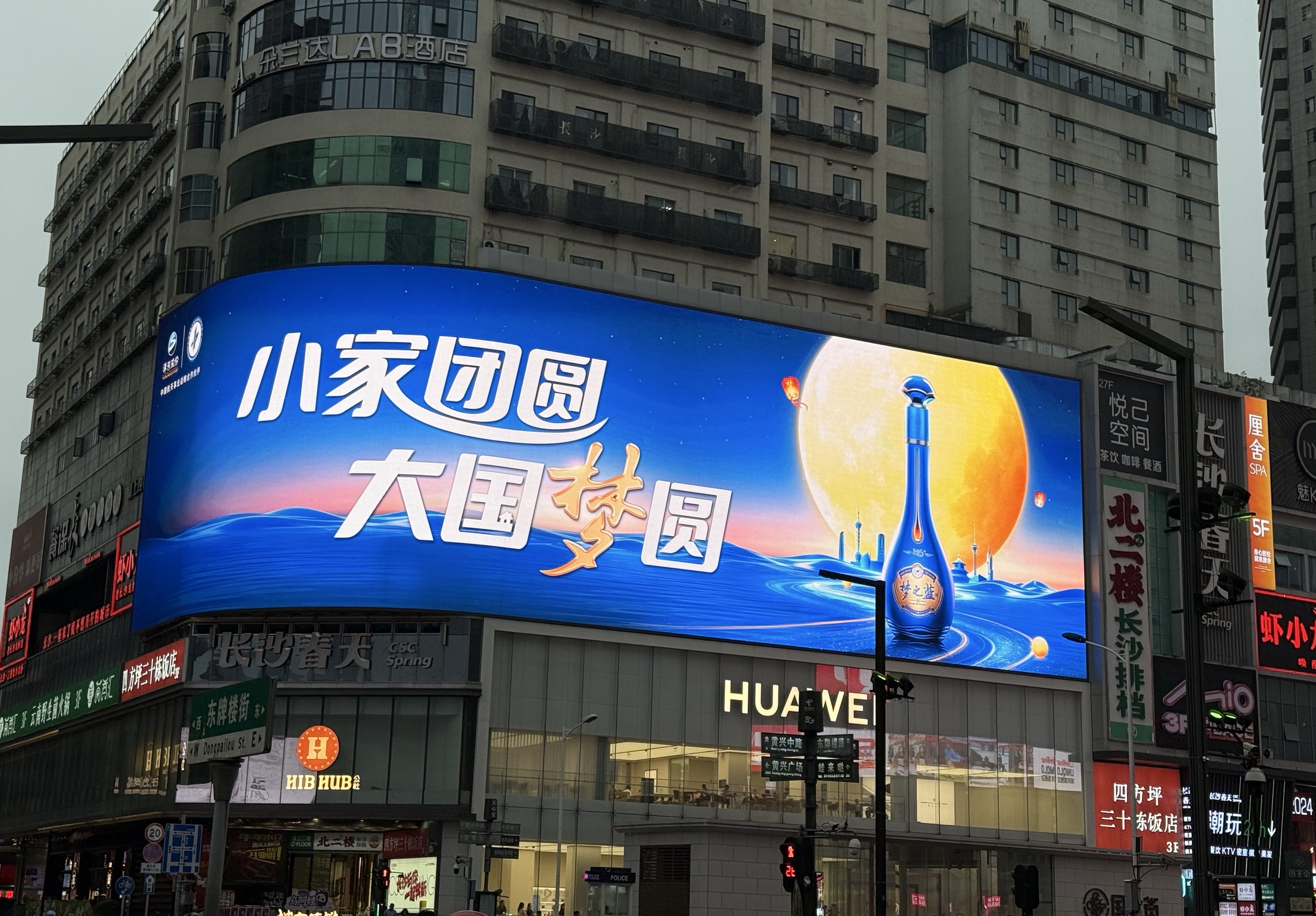 洋河在长沙核心商业区五一商圈投放巨幅广告,时代财经摄