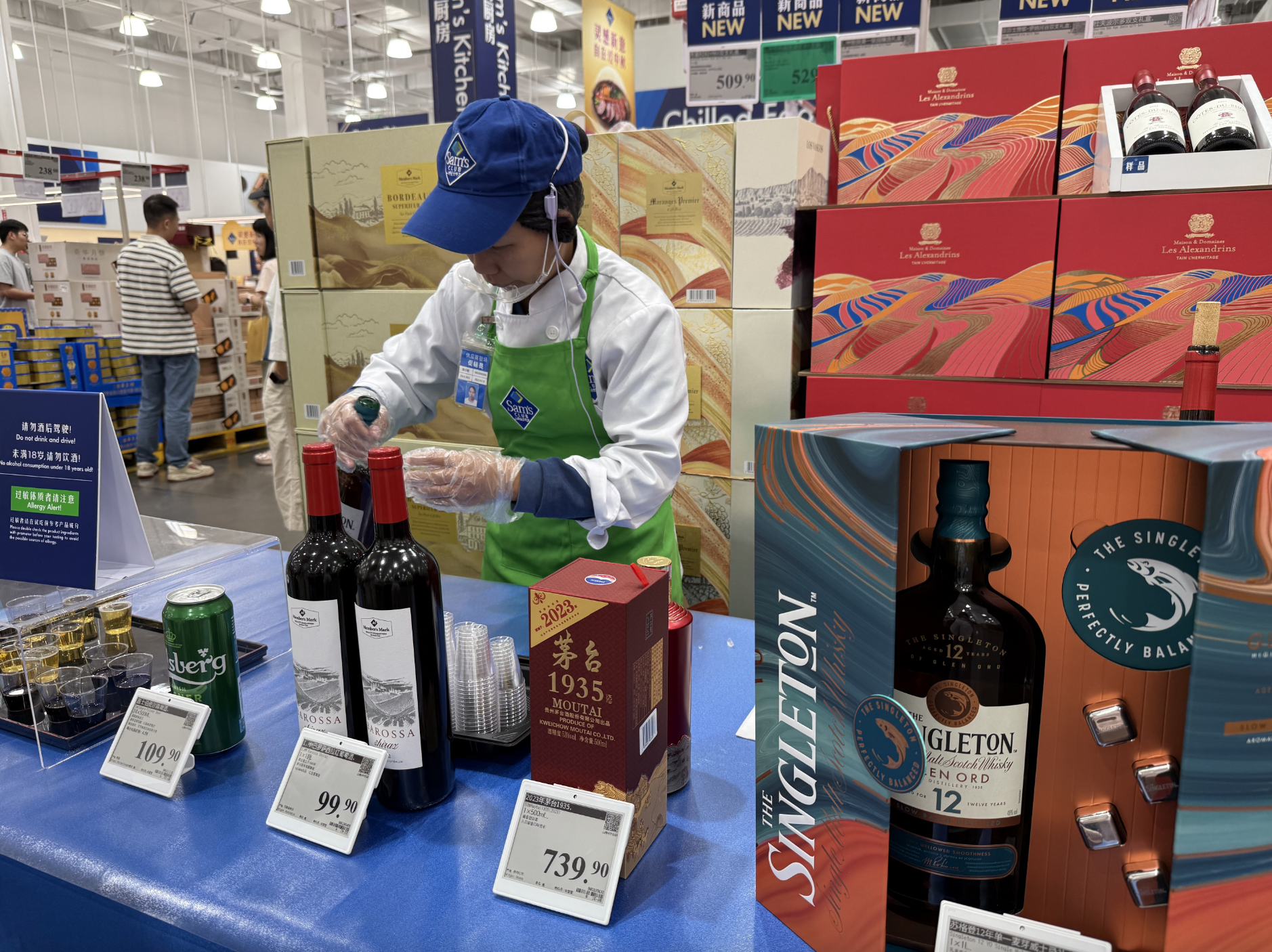 在深圳前海山姆会员店,茅台珍藏475ml和礼宾500ml分别立减100元、200元,53度飞天茅台2024年款从7月底的2299元下调至2199元;售价739.9元的2023年茅台1935还提供了试饮服务。