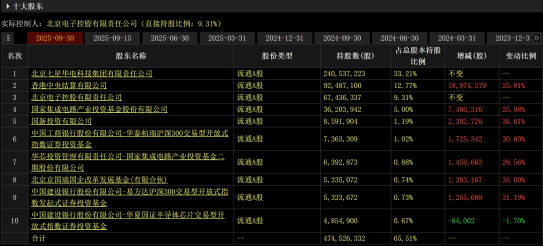 尽管业绩增长,但北方华创的大股东在第三季度纷纷进行了减持。