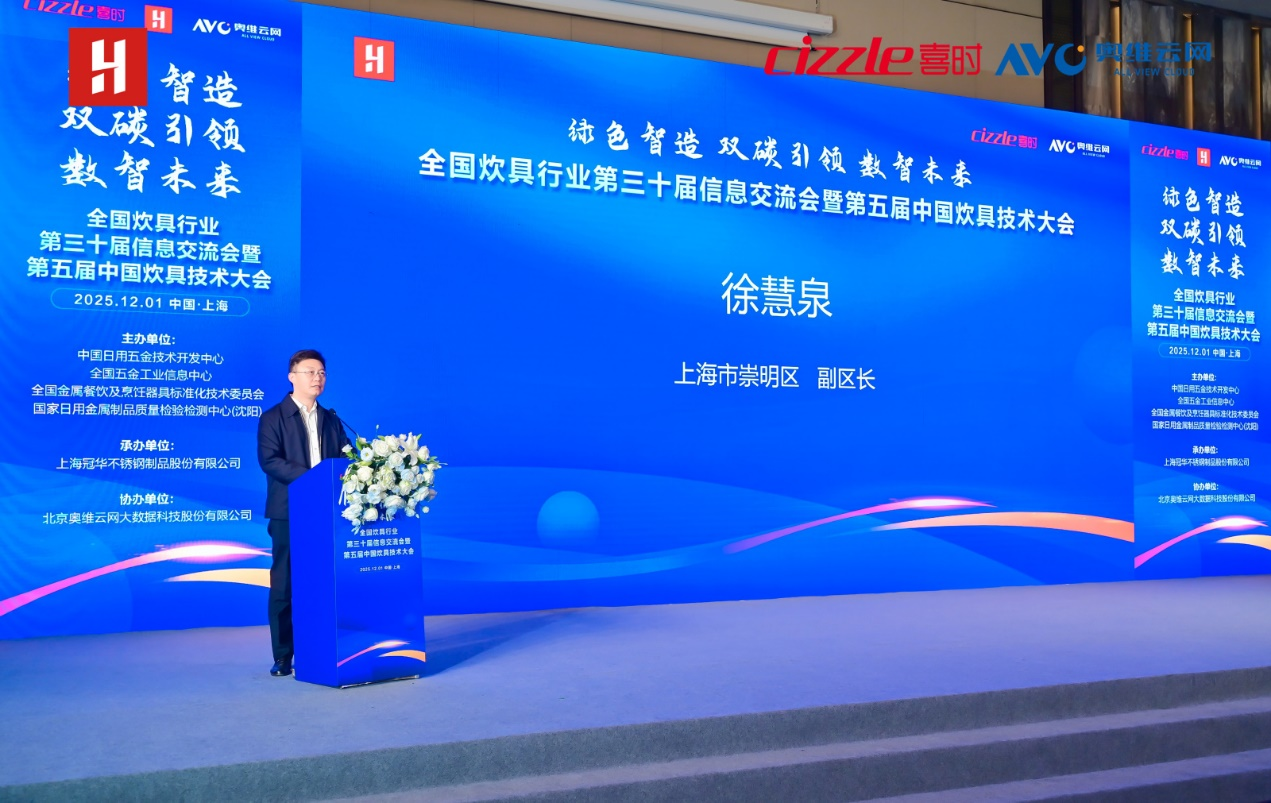 2025年12月1日,全国炊具行业第三十届信息交流会暨第五届中国炊具技术大会在上海崇明由由喜来登酒店成功举办。本次会议由中国日用五金技术开发中心、全国五金工业信息中心、全国金属餐饮及烹饪器具标准化技术委员会、国家日用金属制品质量检验检测中心(沈阳)主办,北京奥维云网大数据科技股份有限公司协办,上海冠华不锈钢制品股份有限公司承办,以“绿色智造·双碳引领·数智未来”为主题,汇聚行业领导、企业代表及专家学者,共探炊具产业转型升级新路径。