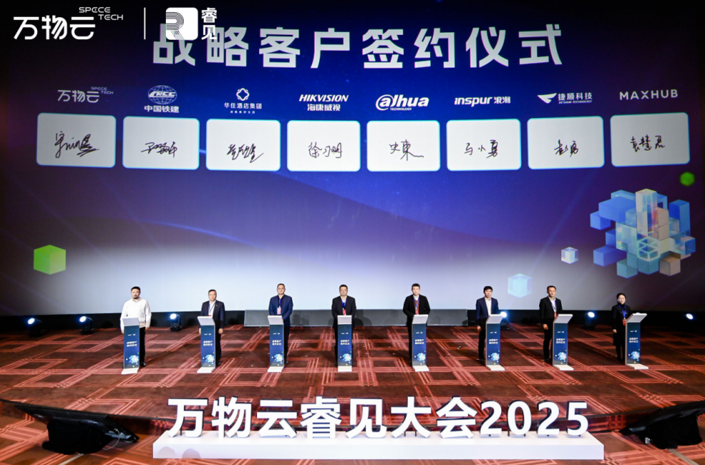 会上,万物云还与中国铁建、华住酒店集团、海康威视、大华股份、浪潮信息、捷顺科技、视源MAXHUB等21家企业完成战略客户签约仪式,将共同推动灵石在更多空间场景的落地应用,实现合作共赢。