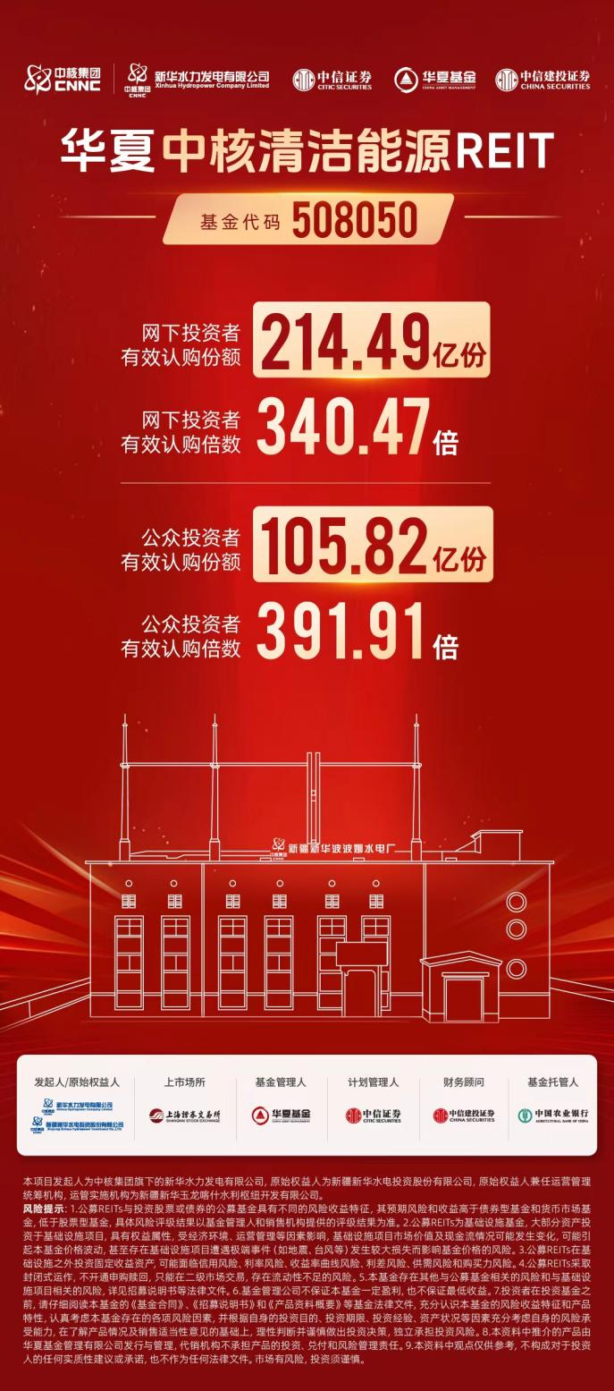 认购资金超1616亿元 华夏中核清洁能源REIT实现超募