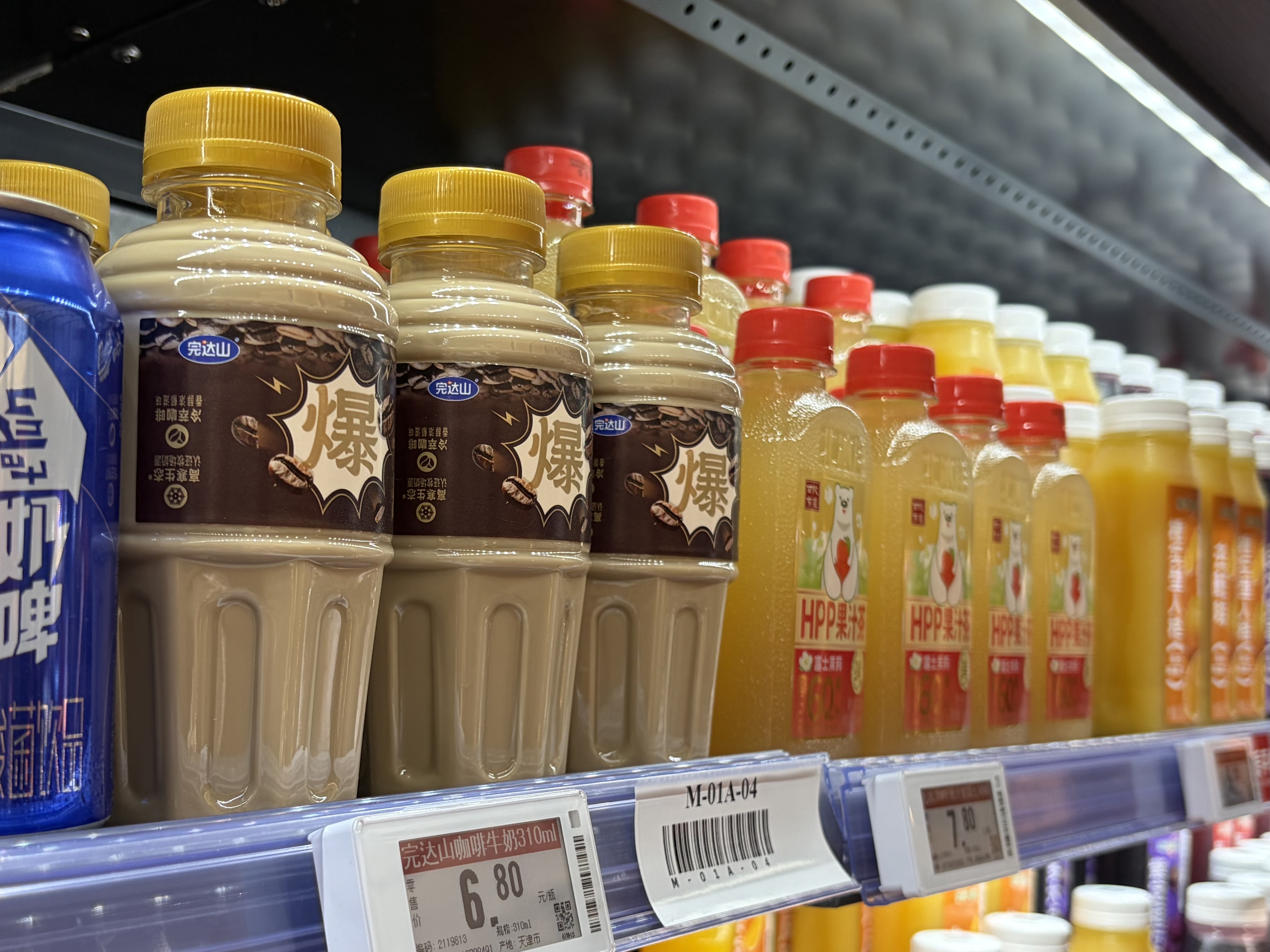 永辉超市里的完达山咖啡牛奶 时代财经摄