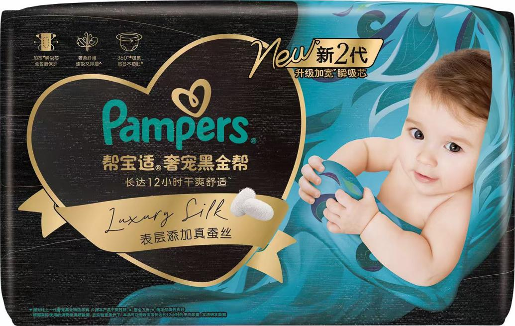 据了解,帮宝适奢宠黑金帮纸尿裤添加了真蚕丝,升级了防漏保险芯,加宽了10%,即使是“稀便”这样的难题也能保持长达12小时干爽舒适、柔软透气。