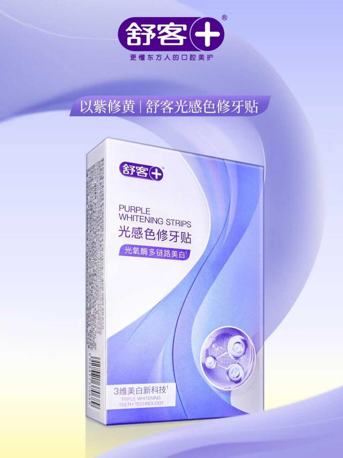 除了刷牙的清洁需求,部分青少年或宝妈宝爸有美白牙齿的需求,我们推荐——舒客光感色修牙贴。