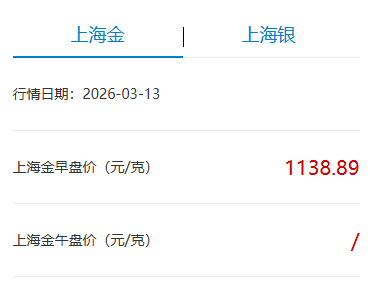 比如,3月13日,上海金早盘价为1138.89元/克;而3月13日的黄金实物(品牌)价格如下,各家门店有所差异。