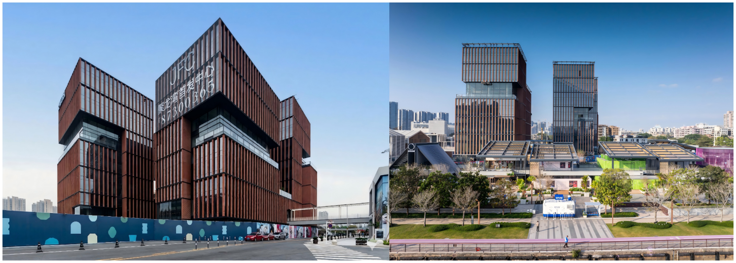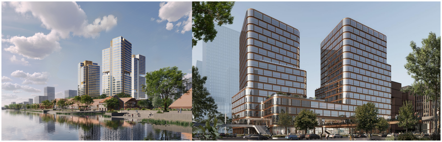 图:广州西岸中心效果图(左)、聚龙湾首创中心效果图(右)