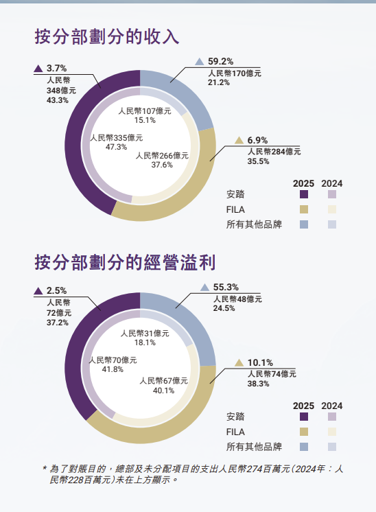与此同时,主品牌的角色也在发生调整。财报显示,安踏主品牌收入增速为3.7%,低于集团整体水平,其经营溢利率同比下降0.3个百分点至20.7%。