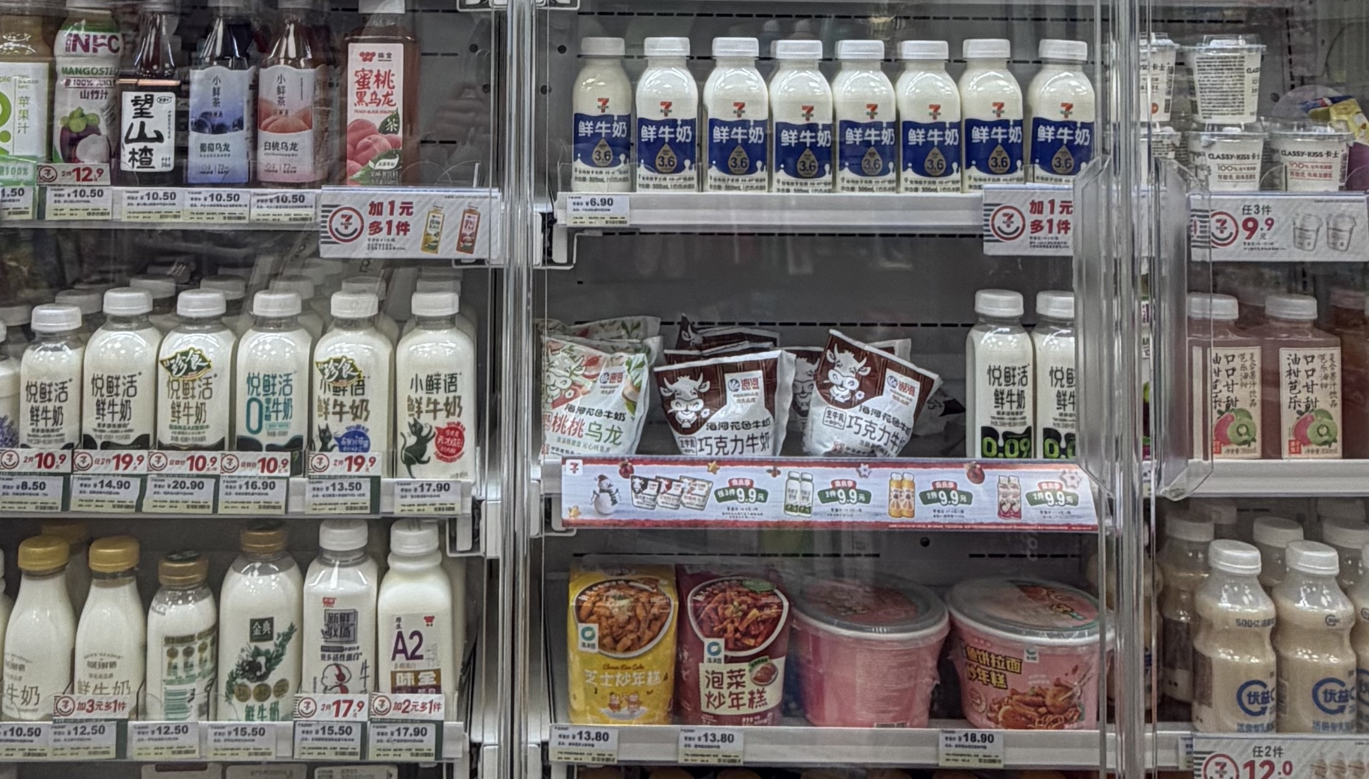 2024年,海河更是凭借香菜牛油果味牛奶火爆全网,其在小红书、抖音等平台的相关内容阅读量短时间内就突破百万。该产品也因此被线下门店摆放在核心陈列位置,成为门店的引流爆款。