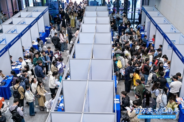 4月9日下午,由佛山领衔的广东“引才专列”率先驶入南京大学仙林校区,南大国际会议中心内人头攒动,一场诚意满满的引才盛会正式拉开帷幕。4月10日上午,东南大学九龙湖校区焦廷标馆将接续登场,双校联动,为南京学子带来涵盖博士至本科全学历层次的优质岗位。