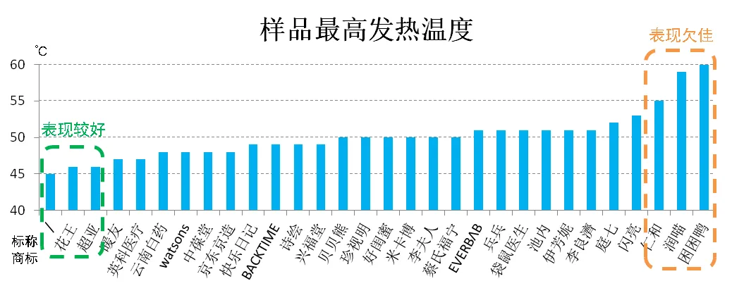 ▲30款样品最高发热温度。(数据来源:上海市消保委)
