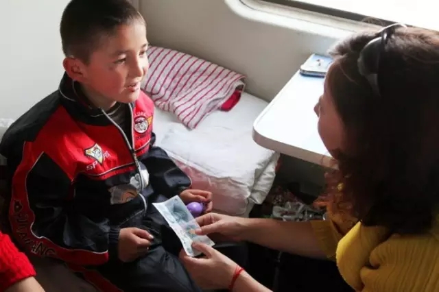 首彩的一名志愿者在火车上曾给过他十块钱,问他拿去后最想做什么?他想也没想就回答,买车票回家看奶奶。对我们来说,10元钱可能连一顿饭钱都不够,然而,对一个新疆的小男孩来说,多10元钱就意味着多一次回家和亲人团聚的机会。