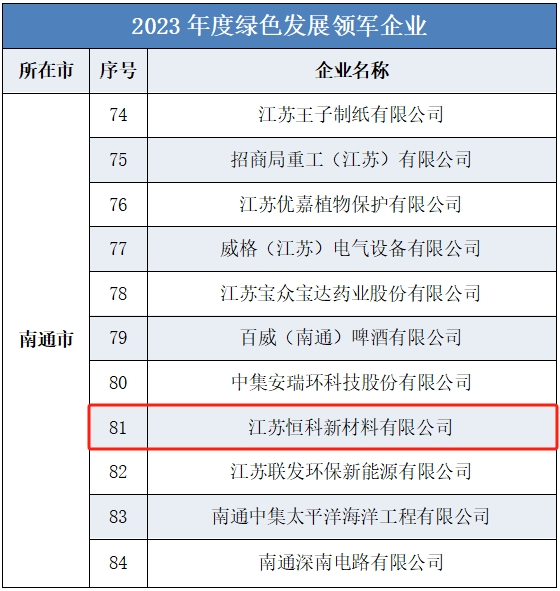 近日,江苏省生态环境厅、江苏省工商业联合会联合发布“2023年度绿色发展领军企业”名单,恒力石化旗下江苏恒科新材料有限公司榜上有名。