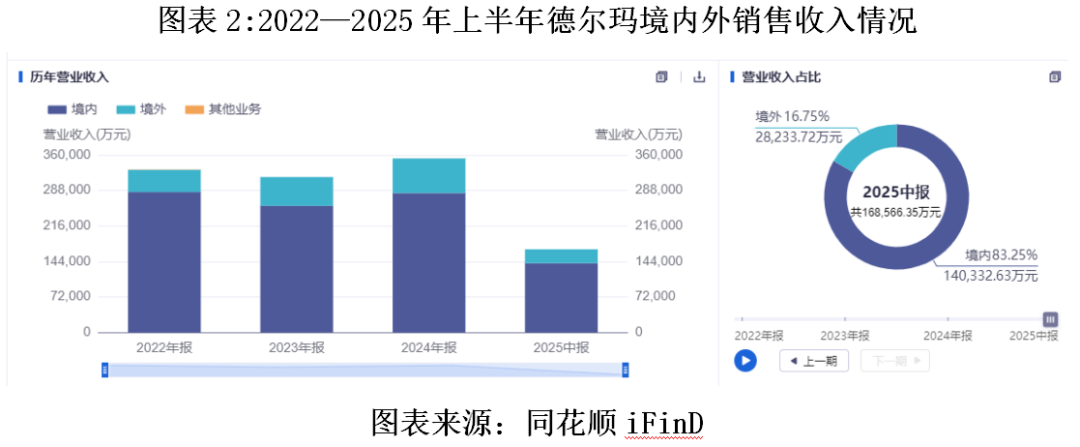其中,德尔玛今年上半年的境外销售收入同比出现下滑,海外市场拓展或不及预期。