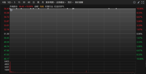 11月28日,杰瑞股份开盘一字涨停,报56.43元/股,市值578亿元,年内涨幅达56.14%。截至收盘,仍有超7亿元资金封死涨停板。