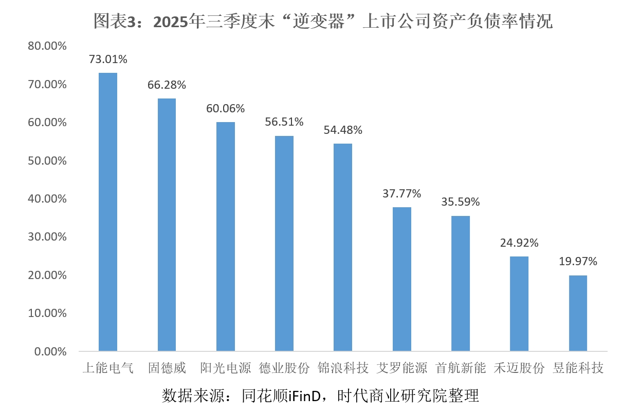 资产负债率偏高,也是上能电气通过定增募资扩产的原因之一。同花顺iFinD显示,截至今年三季度末,上能电气的资产负债率达73.01%,在逆变器上市公司中排名第一,超过平均值47.62%。