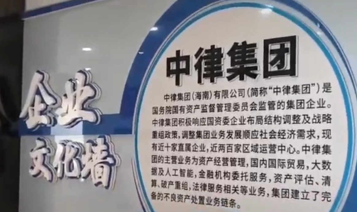 时代周报记者从中律集团内部人士处了解到,中律集团自称是国资委监管的集团企业。现有近十家直属企业,近两百家区域运营中心。主营业务为资产经营管理,国内国际贸易,大数据及人工智能,金融机构委托服务,资产评估、清算、破产重组,法律服务相关等业务。