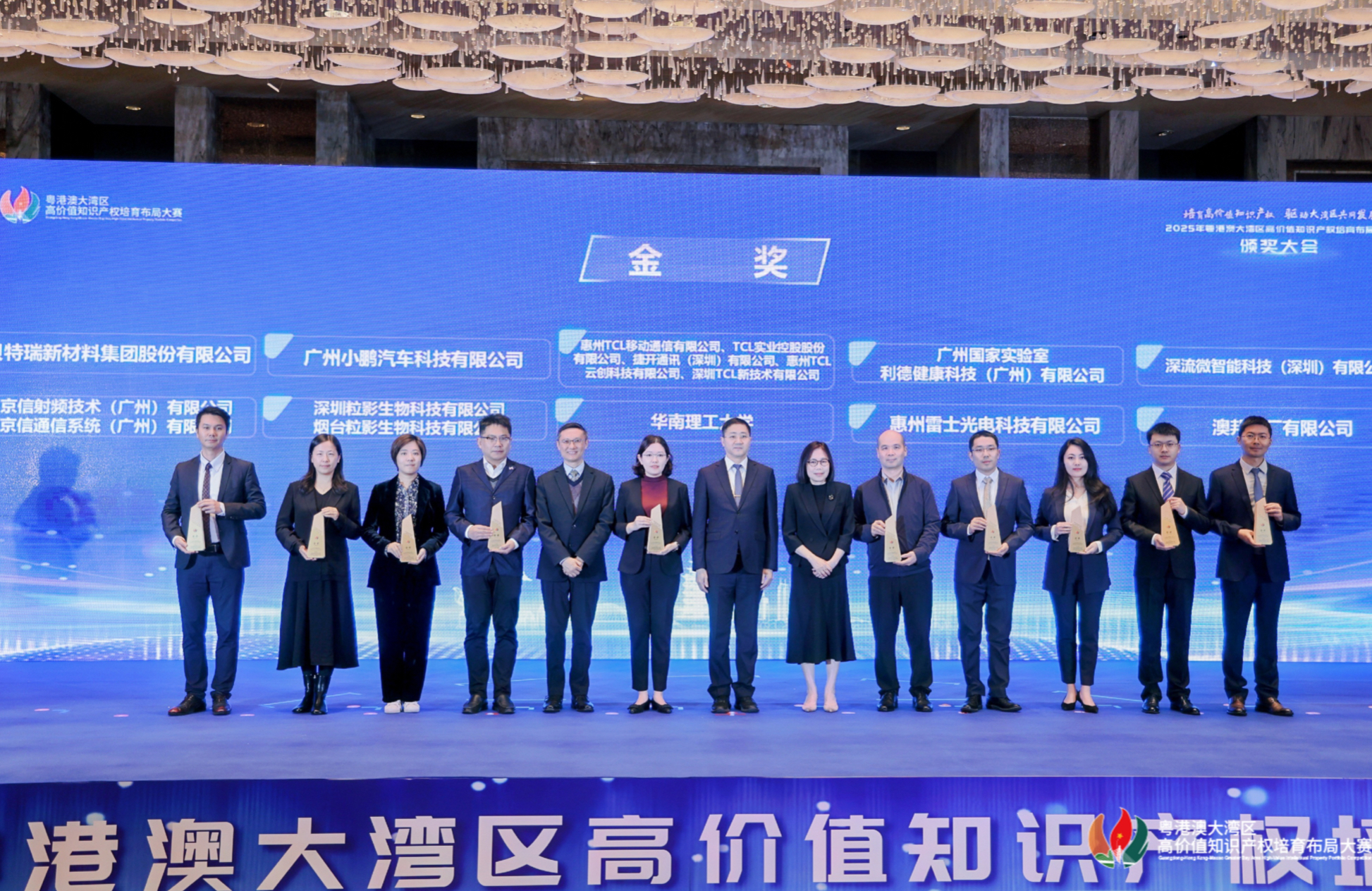 1月20日,2025年粤港澳大湾区高价值知识产权培育布局大赛(以下简称“湾高赛”)颁奖大会在广东惠州举行。国家知识产权局、世界知识产权组织中国办事处、广东省市场监督管理局(知识产权局)、香港特别行政区政府知识产权署、澳门特别行政区政府经济及科技发展局、惠州市人民政府等单位有关负责同志出席活动。参赛项目代表、大湾区科技创新企业、金融机构及媒体代表等近300人参加大会。