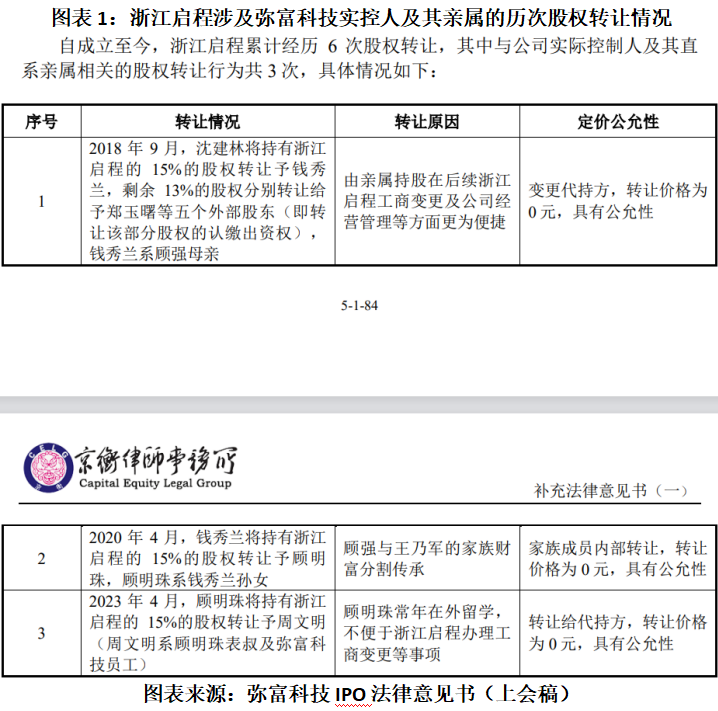而根据弥富科技此次IPO的法律意见书(签署日为2025年12月23日),在顾明珠将浙江启程的股权转由周文明代持后,浙江启程未有涉及弥富科技实控人及其亲属的股权转让行为,或意味着截至法律意见书签署日该股权代持情形尚未解除。