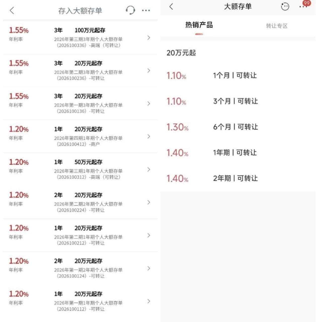 值得一提的是,除了上述存款产品,大额存单也较受部分资金较大的储户青睐。