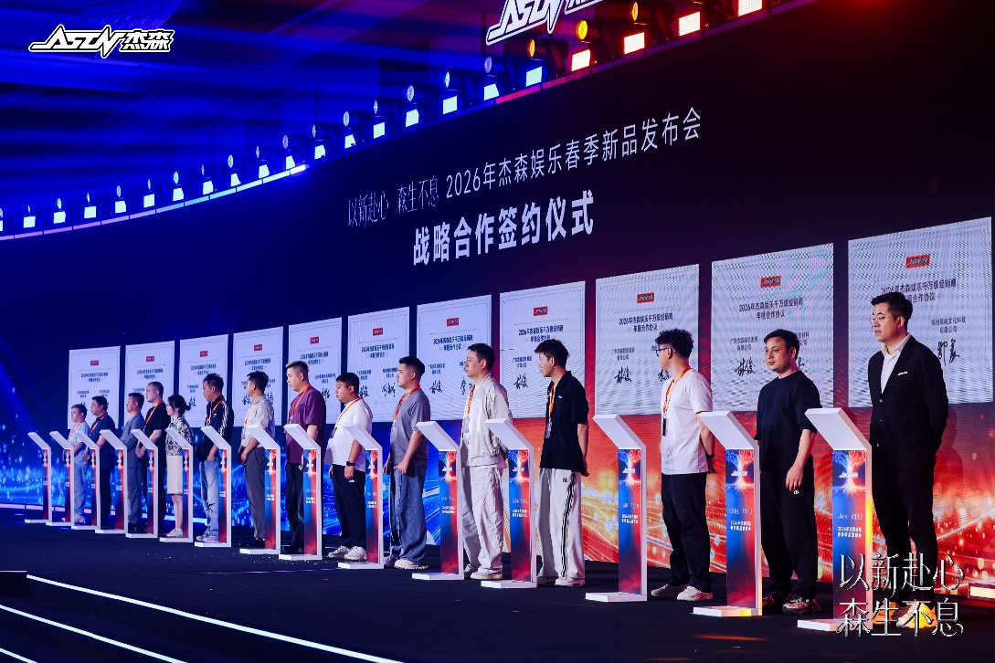 此次战略合作的密集落地,印证了合作伙伴对杰森娱乐集团生态布局的高度认可与长期看好。集团战略与全品类产品矩阵的全面升维,不仅拓宽了市场覆盖范围,更为经销商带来有壁垒、有纵深、可持续的增长动能,令现场来自全国各地的核心经销商与行业合作伙伴倍感振奋。