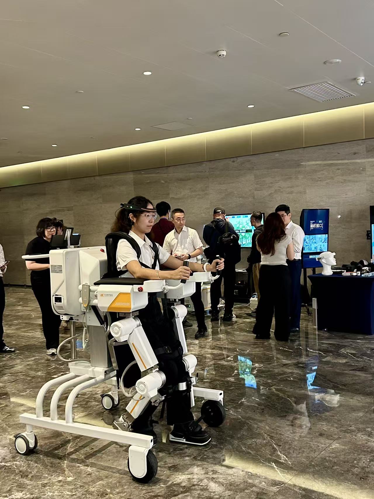 记者在现场体验广东制造的高科技产品(图源:时代周报王晨婷/摄)