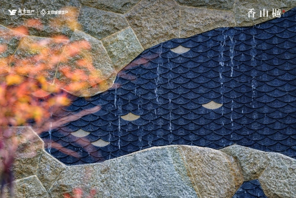 三山五园的千年文脉成为香山樾一以贯之的营造原点。项目将香山的自然山水脉络与三百年历史遗存深度融合,全部规划为纯四层墅境大平层,建筑总高仅约 12 米,低伏于青山之间,真正实现了“建筑从自然中生长出来”。 项目以宋代极简美学为内核,为还原宋代汝窑 “雨过天青云破处” 的极致美学意境,项目团队遍寻全国陶瓷与建筑专家,历时近十月反复调试配方与烧制工艺,最终研发出专属的天青色仿汝窑陶板。这种陶板温润如玉的质感,与雅奢金铝板、蓝眼石材巧妙搭配,形成了“金镶玉,石嵌金”的独特建筑立面。阳光之下,天青色的温润与香山的自然山色浑然一体。