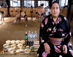 9.日本相扑手Nagoya和他一天的食物。拍摄当天食物总热量值:3500卡路里。