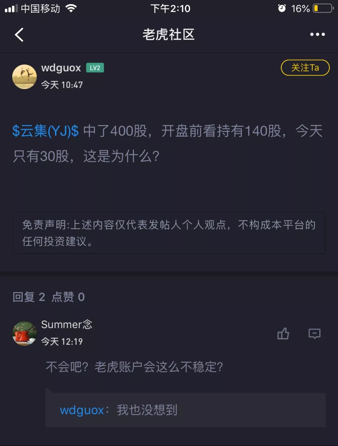 显然易见的是,投资者认为自己被坑了,而老虎证券也认为自己很冤枉。
