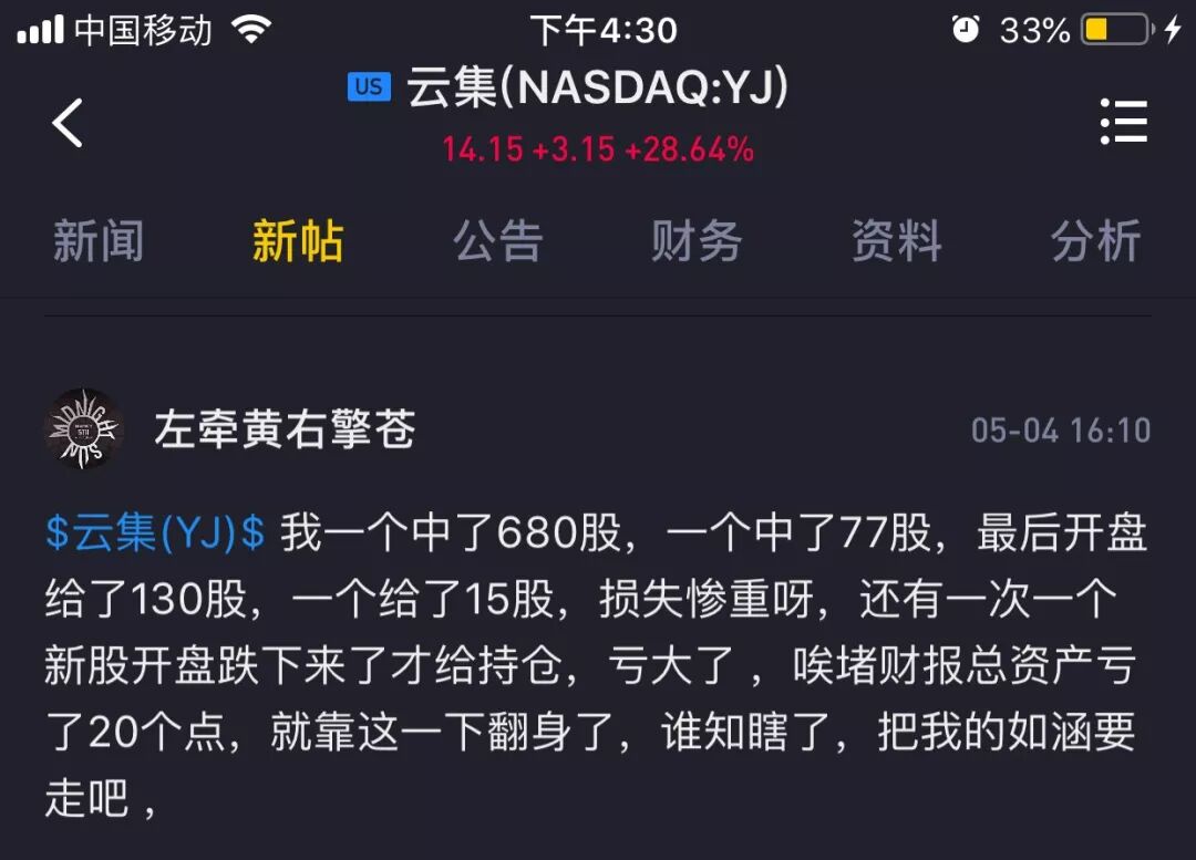 与此同时,云集盘中则暴涨60%。因此,通过老虎证券中签云集新股的投资者,纷纷在老虎证券平台上吐槽泄愤。
