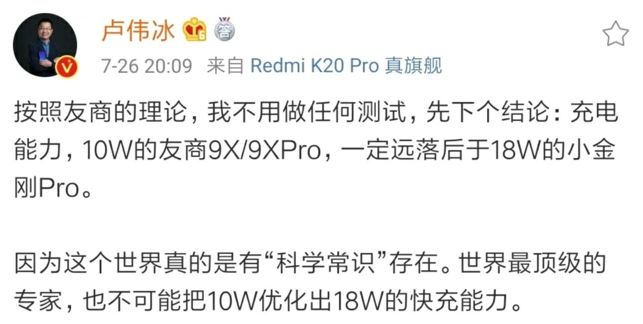 年初红米品牌独立发布会一役后,雷军转而成为5G手机和Mix Alpha等概念产品的布道者。“怒怼友商”这项手机厂商的传统艺能,落到了卢伟冰身上。